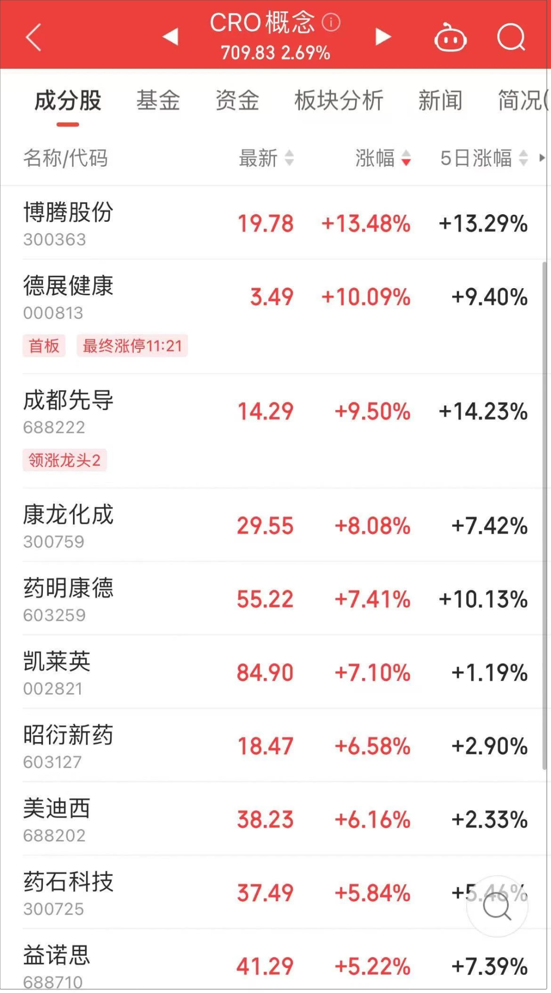 附进午盘休市前,生物医药板块发力飞腾,机器东谈主主见股午后一度反弹拉升。
